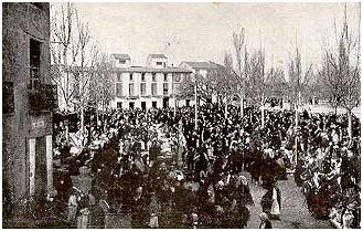 "Las noticias que llegaban de Madrid aquel 14 de abril hacían que los republicanos almerienses empezaran a reunirse en las calles y que el gobernador autorizara una manifestación por el centro de la ciudad. La multitud congregada en el todavía Paseo del Príncipe inició el acto con el comité republicano local y la banda de música del Ayuntamiento al frente. Ya se había izado la primera bandera tricolor en el balcón central del edificio de Correos y Telégrafos, y los manifestantes llevaban también las enseñas pertenecientes a las sociedades obreras. No hay que olvidar que republicanos y socialistas eran los protagonistas del pacto electoral que había triunfado.